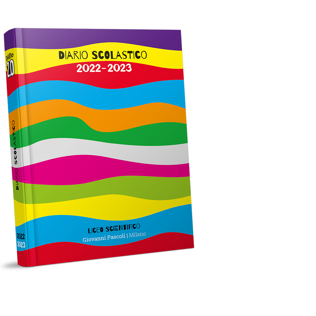La copertina cartonata plastificata opaca è disponibile in tantissimi colori cool (i fluo: arancio e verde; i classici: giallo, blu, bianco, rosso e nero; i policromatici: Wave e Mimetico; i trendy: Gold e Silver; gli eco: Planet e Wood) e può essere personalizzata con il nome e il logo della scuola. La cover Black è disponibile in 5 originali versioni con scritte fluo (verdi, gialle, arancio, blu e fucsia).