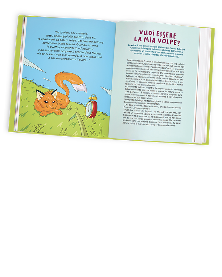 La copertina cartonata plastificata opaca valorizza il tema grazie a un testimonial d’eccezione e transgenerazionale come “Il Piccolo Principe” di Saint-Exupéry, il viaggiatore dell’Universo alla riscoperta della semplice complessità delle cose più piccole. La copertina può essere personalizzata con il nome della scuola.