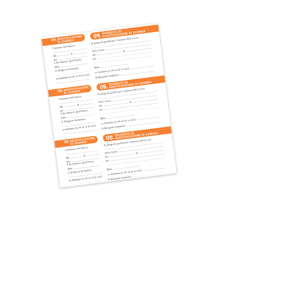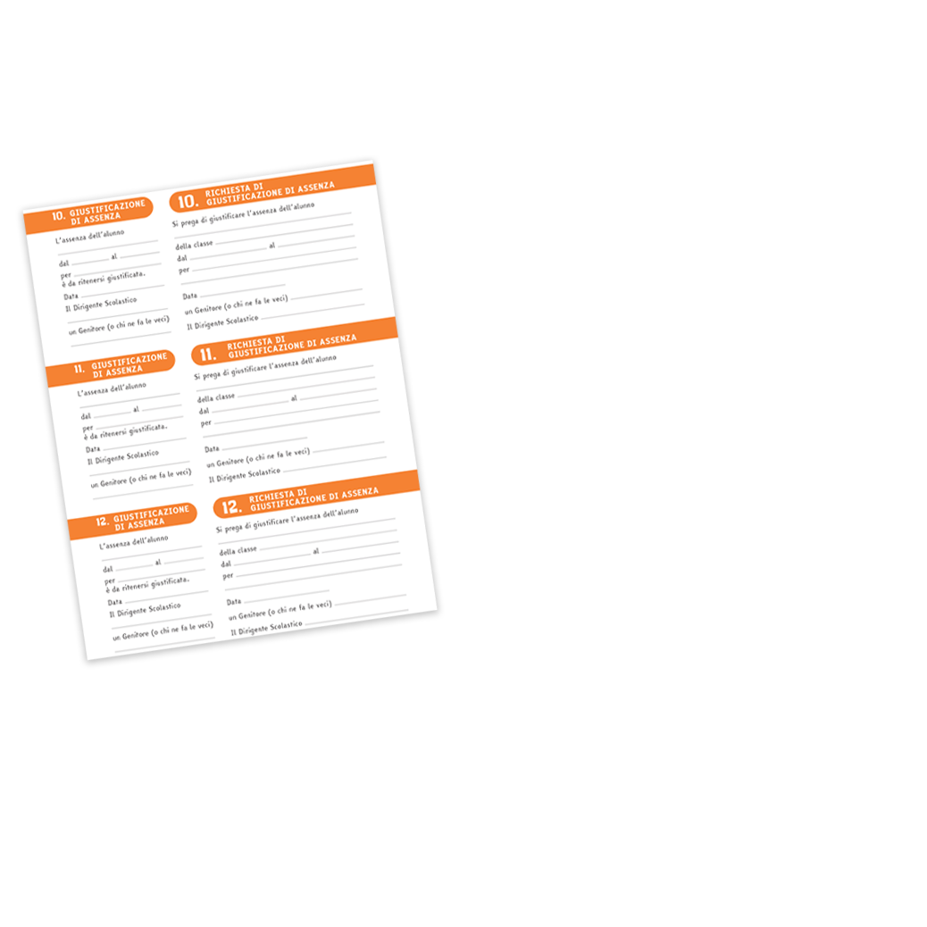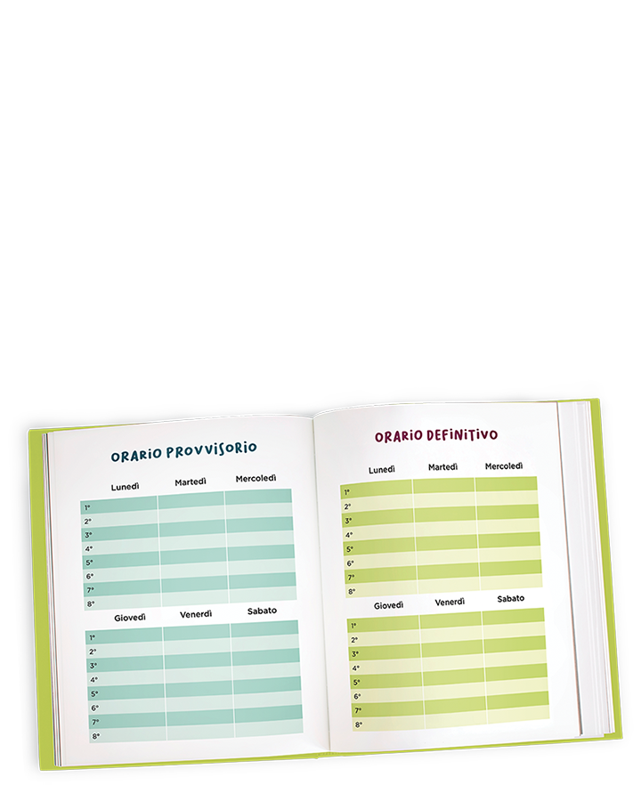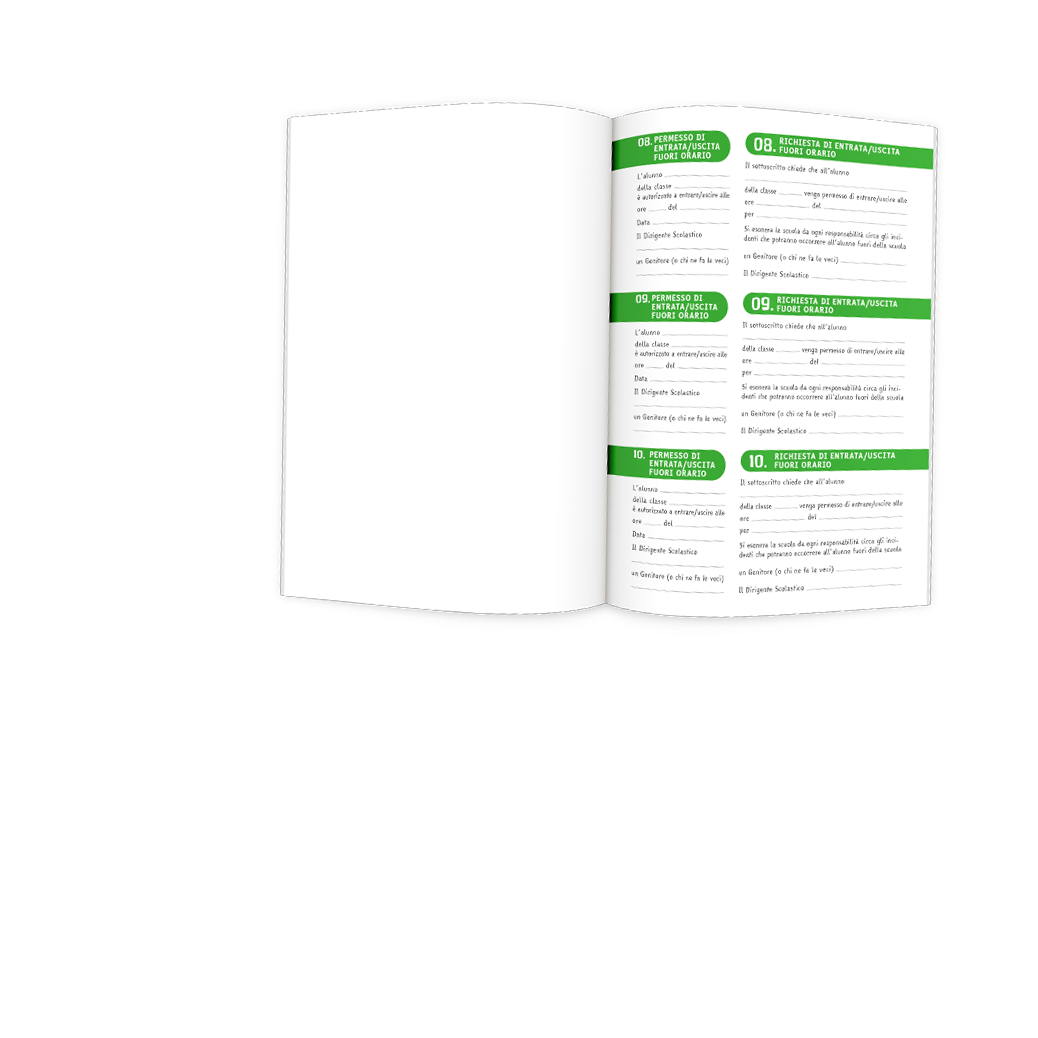 Inoltre, la parte finale dell’agenda contiene un libretto scolastico con giustificazioni assenze e permessi entrata-uscita fuori orario.