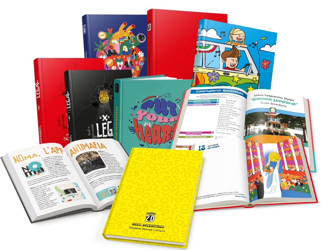 Le pagine del Diario, stampate in quadricromia e arricchite da contenuti editoriali (illustrazioni, curiosità, rompicapo e barzellette), riportano una sezione dedicata alla comunicazione scuola-famiglia per consentire a docenti e genitori di avere un filo diretto ogni giorno.